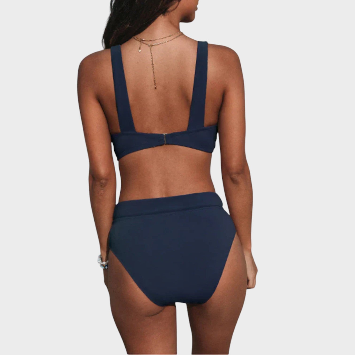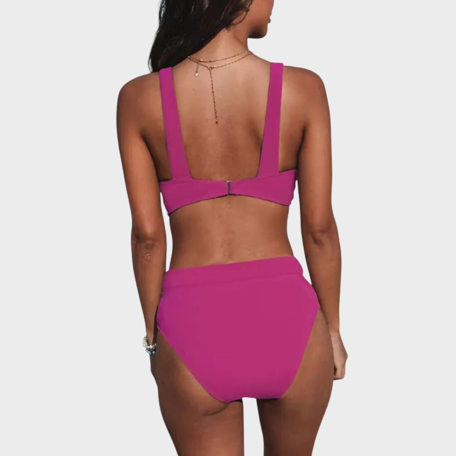 Šis bikini buvo sukurtas moterims, kurios nori jaustis gražiai ir saugiai paplūdimyje ar baseine. Su struktūrizuotu viršumi ir plačiomis petnešėlėmis, užtikrinančiomis didesnį palaikymą, jis siūlo komfortą nesumenkindamas stiliaus. Aukšto juosmens kelnaitės švelniai formuoja siluetą, garantuodamos elegantišką ir modernų įvaizdį.