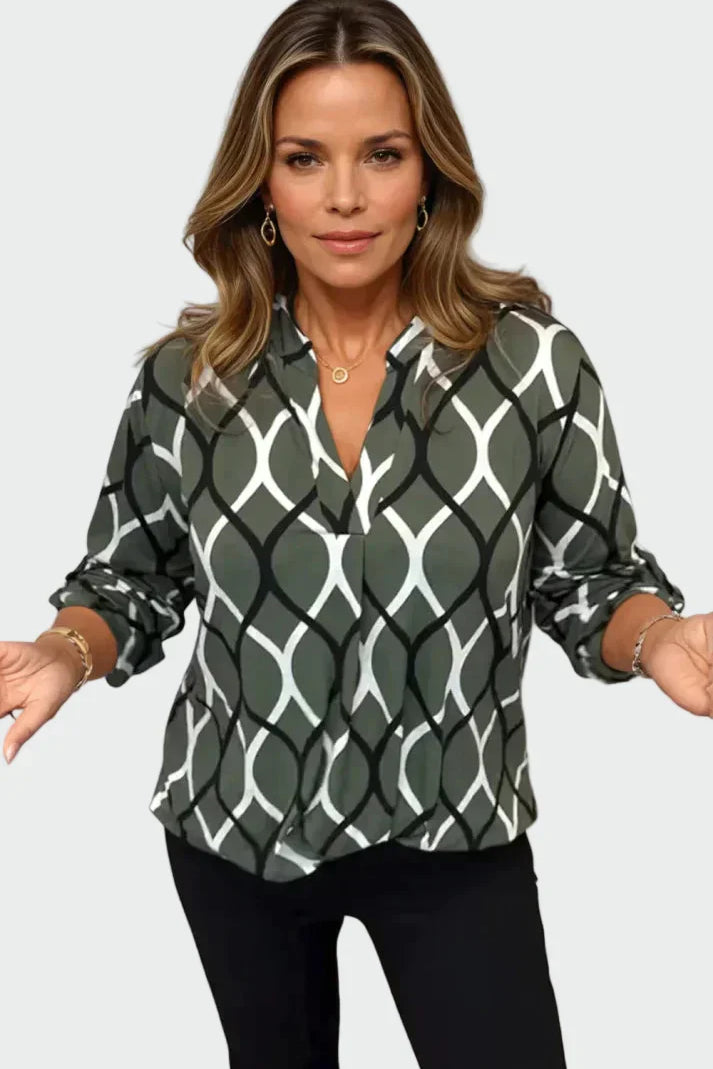 Klasikinė palaidinė su ilgomis rankovėmis ir elegantišku raštu