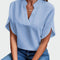 Balta elegantiška marškiniai su moderniu V formos iškirpimu ir trumpomis rankovėmis su šoniniu atidarymu. Minimalistinis dizainas, derinantis paprastumą ir rafinuotumą, puikiai tinkantis kasdienėms ir oficialioms progoms. Lengvas audinys suteikia komfortą, o siluetas švelniai apglėbia kūną su subtiliu elegancija.