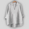 Elegantiška lininė bluzonė, kuri skleidžia minimalistinę eleganciją ir laiką nepavaldi stilių. Gilus V formos iškirpimas su elegantišku apykakle suteikia modernią liniją, o laisvas kirpimas užtikrina komfortą ir judėjimo laisvę. Asimetrinė apdaila su ilgesne nugarine dalimi užbaigia elegantišką estetiką.