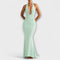 Padarykite kiekvieną pasirodymą nepamirštamą su šia suknele. Sukurta taip, kad puikiai apglėbtų kiekvieną kreivę, ji pagaminta iš aukštos kokybės matinio džersio audinio su šiek tiek elastingumo papildomam komfortui. Apipavidalinta giliu U formos iškirpimu, sustiprinta viela, ir reguliuojamu iškirpimu, ji tobulai pabrėžia šonus ir nugarą, baigiasi žuvies uodegos apdaila su nuostabia uodega.