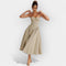 Vėsus ir išskirtinis, ši suknelė natūraliai derina komfortą ir eleganciją. Lengva jos linija suteikia judesio ir žavesio, todėl ji idealiai tinka šviesioms dienoms ir atsipalaidavusiems vasaros vakarams.
