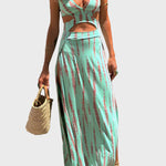 Pakelkite savo vasaros išvaizdą su šia įspūdinga mėtų spalvos suknele su moderniomis iškirptėmis. Puikiai tinka atostogoms, paplūdimiams ir stilingiems vakarams.