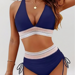 Parodykite savo stilių su šiuo mėlynu aukštu liemeniu bikiniu, turinčiu retro audinį liemenyje. Jis siūlo unikalų moteriškumo, palaikymo ir komforto derinį – idealiai tinka paplūdimiui ar baseinui.