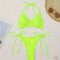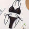 Šis modernus bikini rinkinys pabrėžia moteriškumą elegantišku ir drąsiu būdu. Halterio tipo viršus suteikia stabilumą ir palaikymą, o V formos kelnaitės pagražina klubus ir suteikia žavingą siluetą — puikiai tinka įspūdingoms vasaros išvaizdoms.