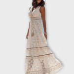 Érica suknelės plazdanti siluetas ir elegantiškas nėrinių raštas daro ją universalia pasirinkimu, puikiai tinkančiu pereiti nuo dienos prie nakties, visada su nesenstančiu boho akcentu.