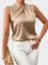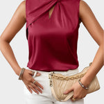 Pademonstruokite savo eleganciją su šia modernaus dizaino satino liemene be rankovių. Audinio blizgesys ir detalės prie kaklo daro ją idealia pasirinkimu vakariniams pasirodymams arba stilingiems kasdieniams pasivaikščiojimams.