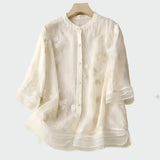 Medvilninė bliuskutė su siuvinėtomis gėlėmis