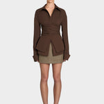 Rudasis Marškinys su Apvyniojimu ir Išskirtiniu Akcentu