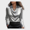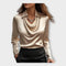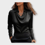 Ši satinė palaidinė suteikia unikalų spindesį ir prabangos jausmą. Su apykakle ir drapiruotu iškirpimu, kuris pagražina, ji yra ideali pasirinkimas biurui, profesionalioms susitikimams ir ypatingoms išvykoms.