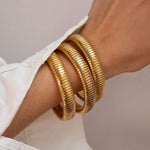 Mūsų juosta su grioveliais yra puiki, kad bet kuri apranga taptų ypatinga! Pakelkite savo riešo aprangą su ribota apyranke, elegantiškai padengta 14k auksu. Ši sofistikuota apyrankė turi unikalų dizainą su grioveliais, pridėdama tekstūros ir elegancijos bet kokiam ansambliui. Puikiai tinka bet kokiai progai, ji siūlo modernaus stiliaus derinį.