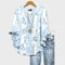 Atnaujinkite savo vasaros stilių su šiuo mėlynu marškinėliu, puoštu elegantiškais baltais lapų raštais. Romantiškos detalės su volanais ant rankovių suteikia judesio ir moteriškumo, o patogus pritaikymas užtikrina lengvumą ir eleganciją kiekvienai dienos akimirkai.