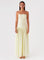Elegantiška be petnešų suknelė su minimalistine linija, kuri pabrėžia siluetą su subtiliu rafinuotumu. Asimetrinė siūlė juosmens srityje suteikia judesio ir modernumo, o ilga sijonas suteikia lengvumo pojūtį. Idealiai tinka vakariniams išeigoms ir ypatingoms progoms su stiliumi.