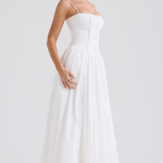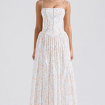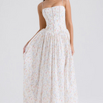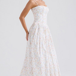 Elegantiška gėlių suknelė, kuri pabrėžia moteriškumą romantiška nuotaika. Prigludusi liemenė su vertikaliomis siūlėmis akcentuoja siluetą, o plati sijonas suteikia patogumą ir judėjimo laisvę. Ideali pavasario ir vasaros pasirodymams, nuo kasdienių pasivaikščiojimų iki elegantiškų kvietimų.