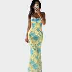 Įspūdinga ir moteriška suknelė su unikaliu gėlių raštu, kuris išryškina siluetą išskirtiniu būdu. Dekolte su drapiruota detale suteikia elegancijos, o prigludęs kirpimas pabrėžia formas. Ideali ypatingoms progoms, vakarėliams ir elegantiškiems kvietimams.