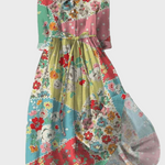 Kelių spalvų gėlių suknelė „Patchwork“ stiliumi
