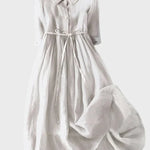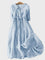 Ši švelni mėlyna suknelė skleidžia ramybę ir eleganciją, idealiai tinkama bet kokiai progai. Jos paprasta linija suteikia komfortą ir klasikinį stilių, o diržas juosmens srityje suteikia moterišką siluetą su natūraliu audinio srautu.