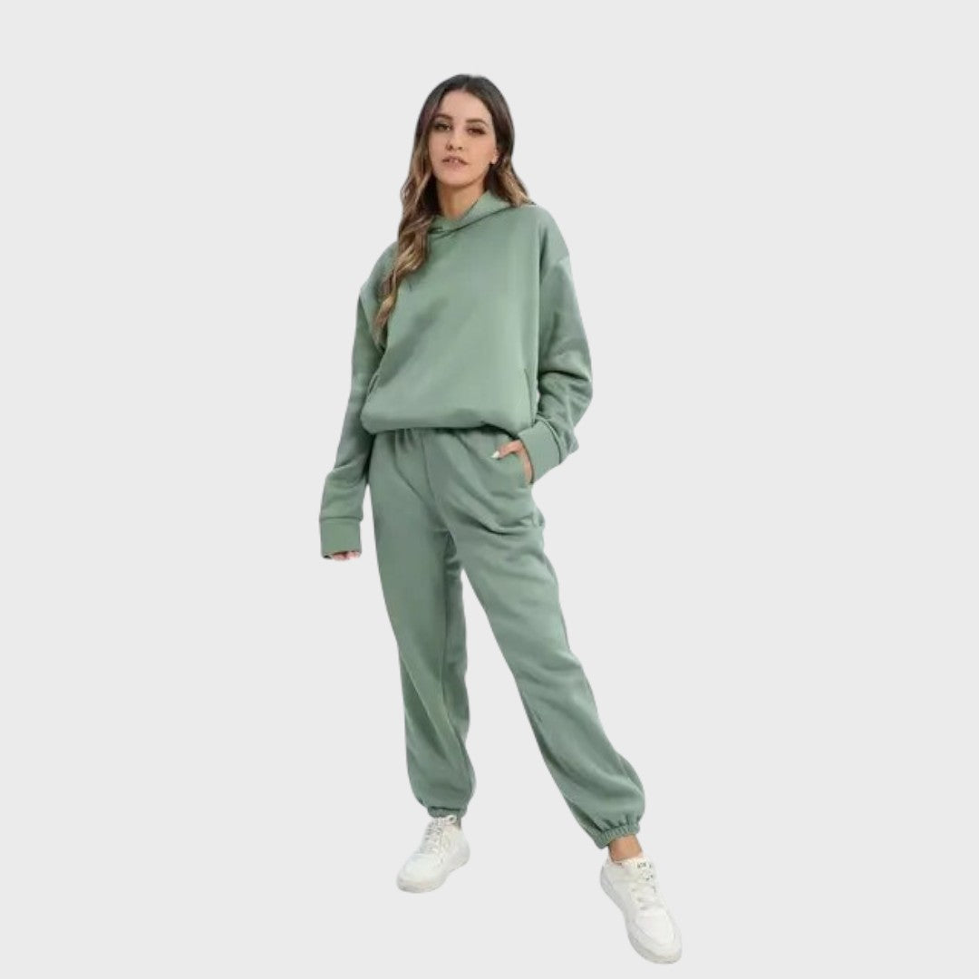 Tėkmė | Moteriškas komplektas su gobtuviu megztiniu ir treninginėmis kelnėmis