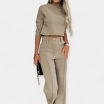 Moderni komplektacija, kuri skleidžia moteriškumą ir komfortą. Derina stilių ir funkcionalumą, idealiai tinka vasaros pasivaikščiojimams, išvykoms su draugėmis ar atsitiktinėms elegantiškoms išvaizdoms.