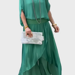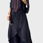 Ši lengva suknelė švelnios mėlynos spalvos suteikia eleganciją ir komfortą kiekvienai progai. Jos laisvas dizainas su asimetriniu apvadu sukuria judėjimo srautą, o lengva tekstūra ją daro idealiai tinkančią pavasario ir vasaros pasirodymams.