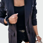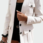 Švarkas su rafinuotu dizainu, suteikiantis dinamišką ir modernų stilių. Turi klasikinį apykaklę, mygtukus priekyje ir praktiškas kišenes su dangteliu. Idealiai tinka tiek profesinėms išvaizdoms, tiek laisvalaikio deriniams, suteikiant eleganciją ir šarmą kiekvienai progai.