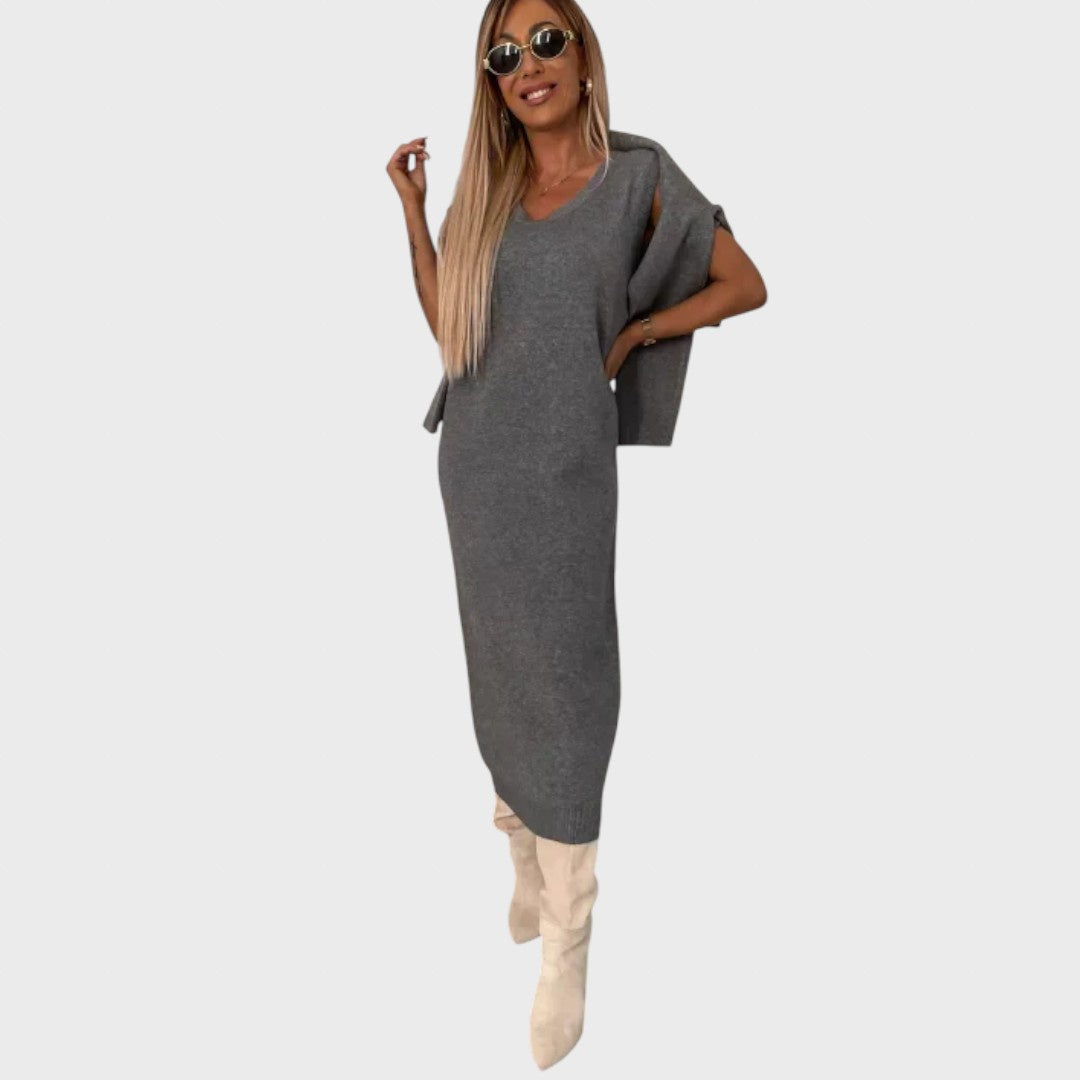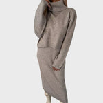 • Universali stiliaus kombinacija: midi suknelė su šilta aukšta apykakle, tinkanti įvairiems metų laikams.
