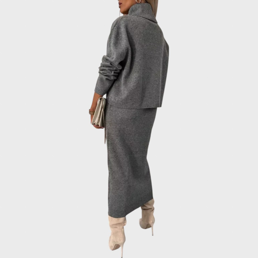 Ši midi suknelė su aukšta apykakle jungia rafinuotą eleganciją su šiluma ir patogumu, suteikdama jaukumo ir išskirtinumo kiekvieną dieną. Aukščiausios kokybės medžiaga ir modernus dizainas leidžia dėvėti ją tiek kasdienėms, tiek ypatingoms progoms, o galimybė dėvėti ir atskirai suteikia universalias stiliaus galimybes.