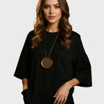 • Modernus struktūruotas dizainas – apvali iškirptė ir vidutinio ilgio rankovės kuria išgrynintą, subalansuotą siluetą.