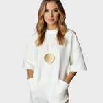 Lengvumas ir laisvė judėti – laisvas kirpimas ir lengvai krintantis audinys užtikrina patogumą visą dieną.