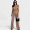 Skulptūrinis elegancija su modernia nuojauta: Sofia komplektas sujungia asimetrinį topą su plačiomis kelnėmis, suteikdamas siluetą, kuris yra elegantiškas ir sklandžiai juda. Puikiai tinka ypatingoms progoms arba norint be vargo pakelti kasdienį įvaizdį.