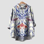 Pridėkite žaismingą nuotaiką savo stiliui su šiuo mėlynos spalvos marškinėliais, papuoštais mielu šuns piešiniu. Patogus ir platus dizainas suteikia judėjimo laisvę, o klasikinis mygtukų apykaklė prideda subtilų elegancijos akcentą. Ideali pasirinktis kasdieniams pasirodymams su išskirtiniu charakteriu.