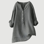 Išskirkite subtilią eleganciją su šiuo baltu marškinėliu minimalistiniu dizainu. Jo laisvas siluetas su V formos iškirpte ir mygtukais priekyje suteikia praktiškumo ir stiliaus, o apversti rankovės suteikia nepretencingo ir modernaus akcento. Puikus pasirinkimas kasdienėms ir profesinėms išvaizdoms.