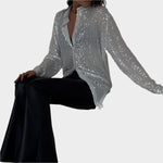 Pavogkite visų dėmesį kiekviename pasirodyme su šiuo įspūdingu marškinėliu. Puikiai tinka vakariniams pasirodymams, vakarėliams ir ypatingoms progoms.