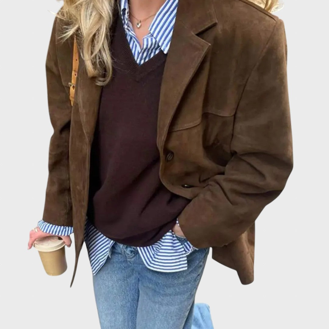 Dana – Elegantiška rudeninė striukė iš zomšos imitacijos su viena saga