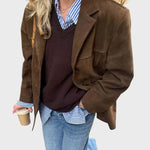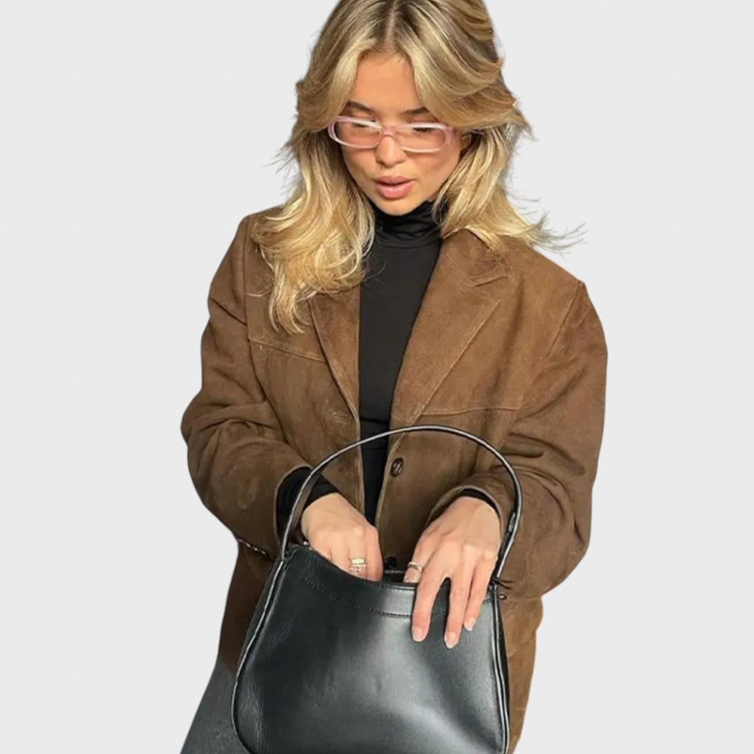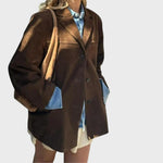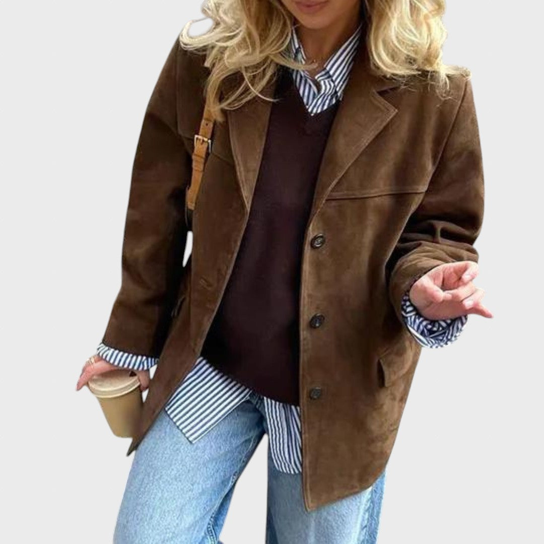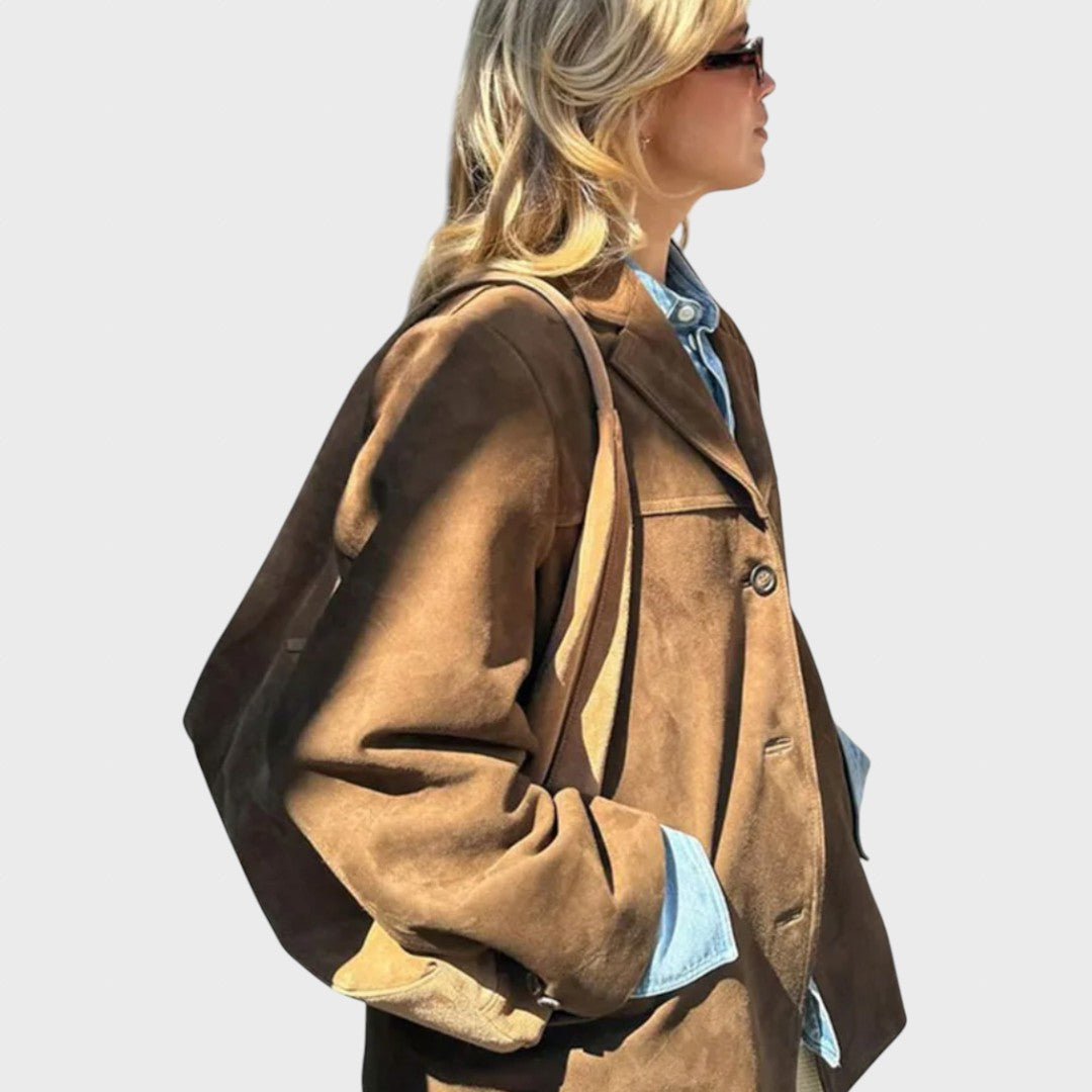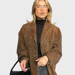 Dana | Oversize rudeninė zomšinė striukė su paprastu užsegimu