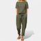 Atnaujink savo vasaros garderobą su šiuo elegantišku ir patogiu dvipusiu komplektu, idealiai tinkančiu karštoms dienoms ir vėsioms vakarams. Jis susideda iš lengvos palaidinės ir plačių kelnių su raišteliu, siūlančių komfortą ir stilių bet kuriai progai.
