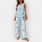 Šis komplektas siūlo lengvą vasaros stilių su šaltu pritaikymu ir šiuolaikiniu dizainu. Puikiai tinka kelionėms, išvykoms ar kasdieniams pasirodymams su nepretenzinga elegancija.