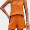 Šis klasiką atspindintis komplektas susideda iš marškinėlių su V formos iškirpte ir mygtukais, kartu su patogiais šortais, idealiai tinkančiais pavasario ir vasaros įvaizdžiams. Solidžios spalvos ir švari linija daro jį universalų ir moterišką bet kokiai progai.