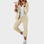 Šis rinkinys sujungia laikui nepavaldų dizainą su aukštos kokybės medžiagomis, siūlydamas patogų, universalią išvaizdą, kuri palieka gerą įspūdį. Jis lengvai derinamas ir prisitaiko prie įvairių progų.