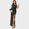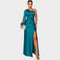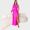Ši vakarinė suknelė spinduliuoja rafinuotumu ir moderniu dizainu. Asimetriška forma su vienu rankovė ir efektingai susiraukšlėta detalė juosmenyje pabrėžia moterišką siluetą, o gilus iškirpimas prideda šiek tiek seksualumo ir elegancijos. Ji idealiai tinka šventinėms progoms, gala vakarienėms ar ypatingiems renginiams, kuriuose norite spindėti ir palikti nepamirštamą įspūdį.