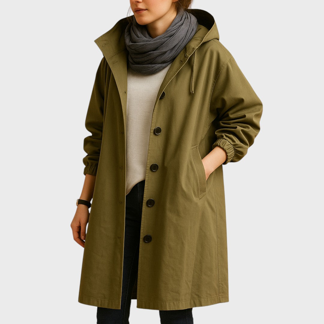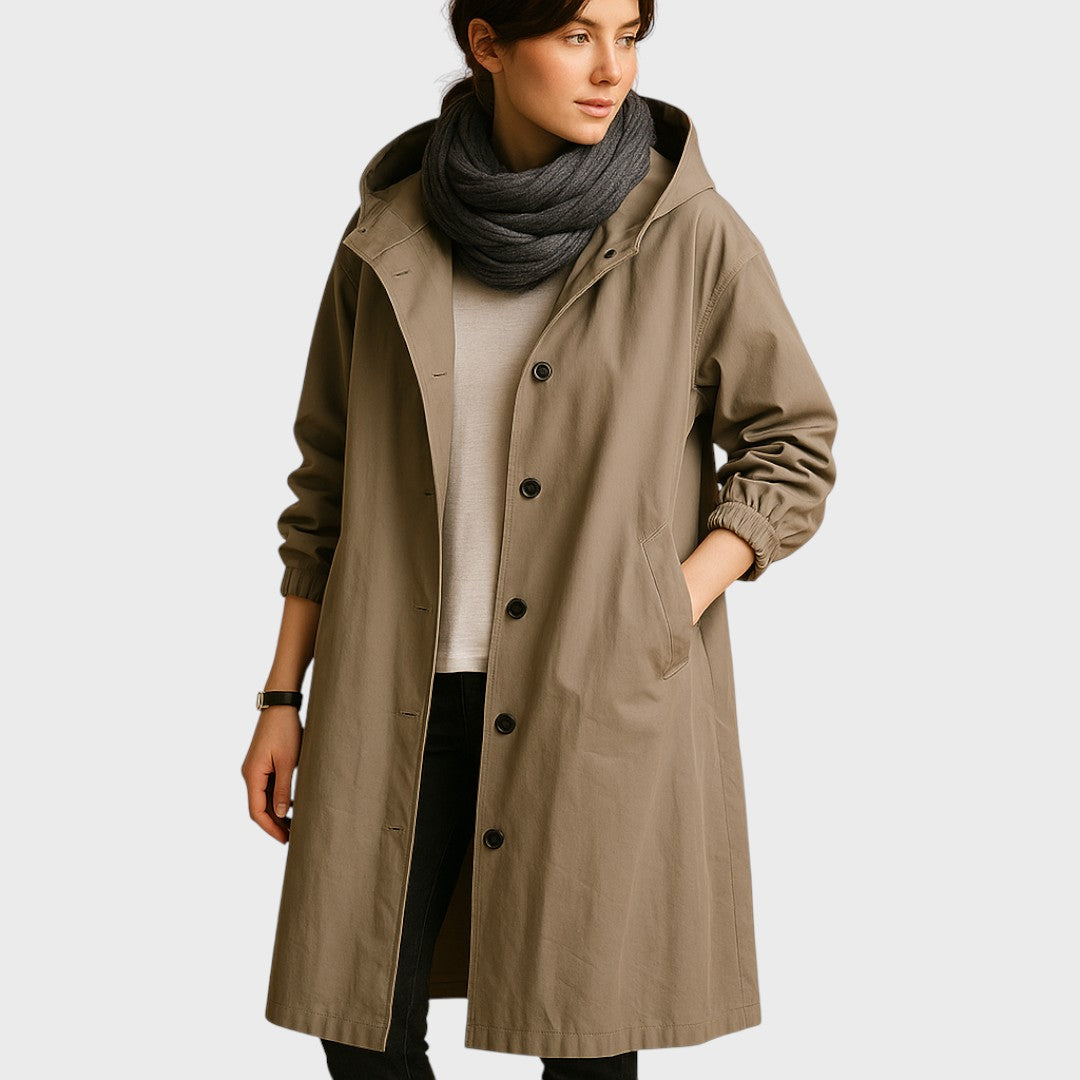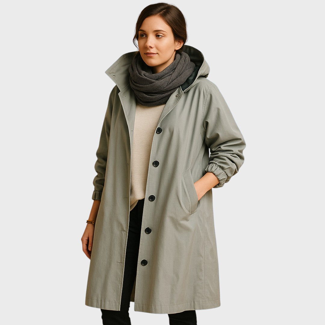 Šalna paltas: ilgas, nepralaidus lietui, su modernia ir elegantiška siluete