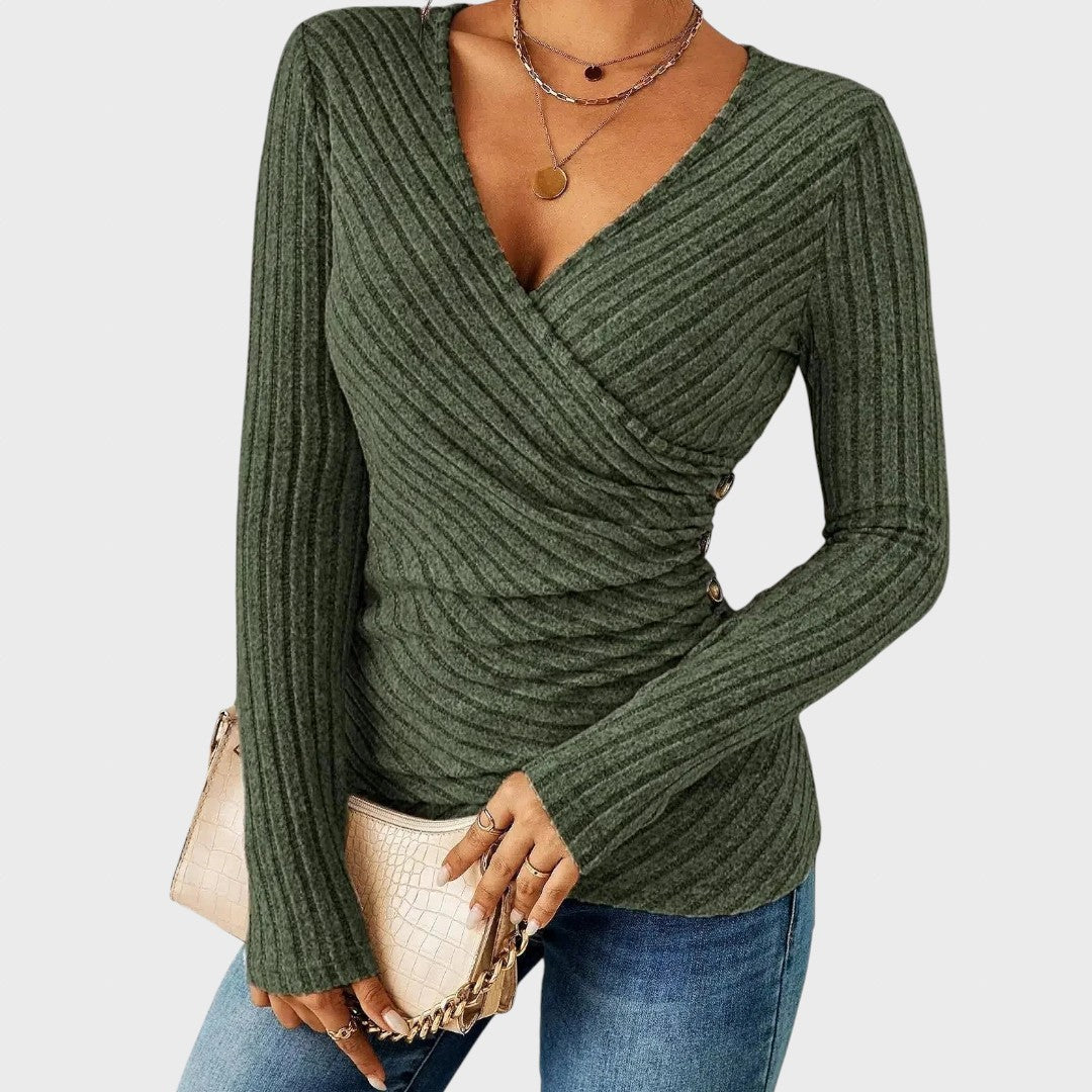 Susipažinkite su Švelnumas – ilgomis rankovėmis ir V formos iškirpte, sukurtu taip, kad pabrėžtų jūsų figūrą ir šildytų net šalčiausiomis dienomis. Pagamintas iš aukštos kokybės, minkštos medžiagos, jis derina stilių ir komfortą, suteikdamas natūraliam siluetui elegancijos. Dizainas, lengvai pridengiantis pilvuką, suteikia švelnią paramą ir pasitikėjimą savimi visą dieną.