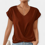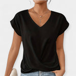 V formos iškirptės ir trumpomis rankovėmis palaidinė